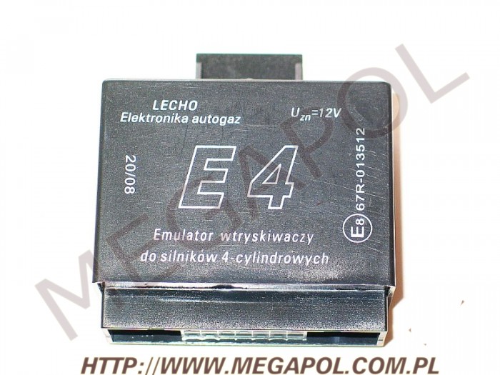 Emulator E4 jest przeznaczony do odłączania wtryskiwaczy benzyny pojazdu wyposażonego w silnik benzynowy z wtryskiem oraz instalację zasilania gazem "propan - butan". Obecnie dostępna jest wersja z wiązką jak na zdjęciu kompletnego zestawu, w przygotowaniu wiązki do samochodów japońskich oraz do samochodów fiat (jeden wtyk szeroki). Emulator E4 obsługuje samochody z silnikiem czterocylindrowym.