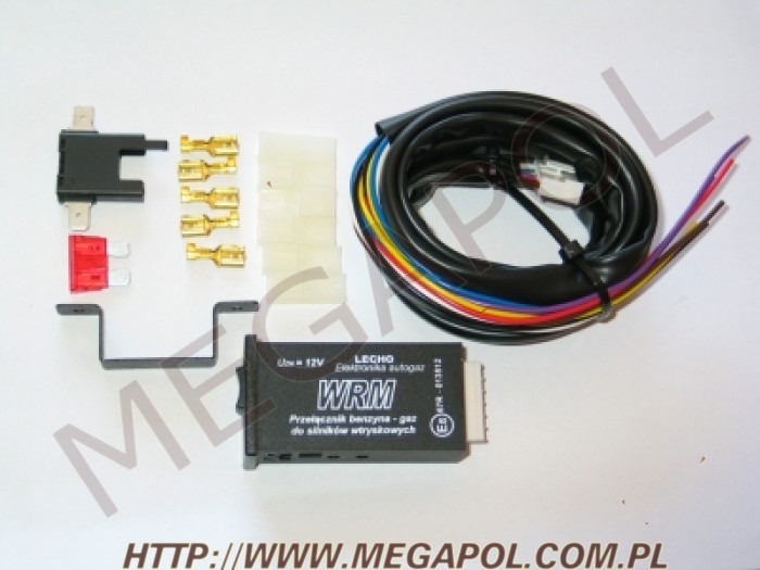 Przełącznik "WRM" jest przeznaczony do zmiany rodzaju zasilania pojazdu wyposażonego w silnik benzynowy z wtryskiem oraz instalację zasilania gazem "propan - butan" z benzyny na gaz i z gazu na benzynę. Jest to prosty sterownik przystosowany do pracy z układem Mini λ, jego funkcja ogranicza się do kontroli obrotów pojazdu i do kontroli czujnika rezerwy gazu. Jest układem mikroprocesorowym, dzięki czemu wzbogacony został o kilka funkcji niedostępnych w sterowniku WR. Próg przełączania obrotów z benzyny na gaz regulowany jest przy pomocy potencjometru dostępnego na bocznej ściance urządzenia. Przełączanie następuje przy przekroczeniu zadanych obrotów. W zależności od typu instalacji zapłonowej w samochodzie, możliwa jest regulacja progu w zakresie od 1000 do 3000 obr/min. Sygnalizacja działania odbywa się na ściance przedniej sterownika w postaci świecących pól. Sterownik został przystosowany do przełączania przy obrotach rosnących lub malejących, oraz do współpracy ze szkiełkami rezerwy 90 Ohm jak również 20kOhm oraz zwykłego czujnika rezerwy. Dokładniejsze dane na temat sygnalizacji działania oraz podłączenia sterownika znajdują się w instrukcji dołączanej do sprzedawanego zestawu.