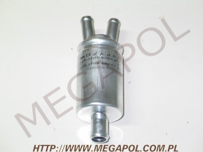 Filtr fazy lotnej FL - 01 16 / 2 x 12 stosowany jest do instalacji sekwencyjnego wtrysku gazu w pojazdach samochodowych z silnikami benzynowymi. Filtr montowany jest na odcinku pomiędzy reduktorem (parownikiem) a przed listwą (szyną) wtryskiwaczy gazu. Zadaniem filtra jest ochrona listwy wtryskowej przed zanieczyszczeniami stałymi występującymi w fazie lotnej gazu co ma na celu zabezpieczenie poprawnego działania delikatnych elementów wtryskiwaczy gazowych w dłuższym przedziale czasowym. Filtry tego typu są najpopularniejszym i najtańszym podzespołem do oczyszczania gazu w fazie lotnej (odparowanej).