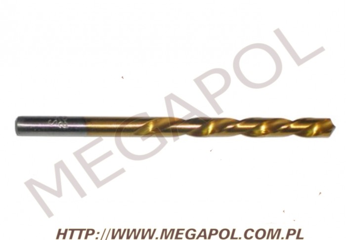 Wykonane ze stali szybkotnącej (4241) o twardości 64° HRC (+/-2), kącie wierzchołkowym 118°, szlif prosty bez korekty ścinu nadajacej się do ostrzenia ręcznego. Powierzchnia wiertła pokryta jest warstwą azotku tytanu co zapewnia niewielki współczynnik tarcia, zmniejsza niebezpieczeństwo przywierania wiórów do wiertła i zwiększa wydajność wiercenia. Tolarancja średnicy h8. Wiertło spiralne prawoskrętne o spirali typu N, walcowane na gorąco na walcach kużniczych o wysokiej elastyczności i wytrzymałości na skręcanie ze szlifowaną łysinką. Chemiczno - termiczny proces chartowania oraz warstwa azotku tytanu zmniejsza zuzycie wiertła oraz zwieksza wytrzymałośc na naprężenia wewnętrzne występujace podczas eksploatacji. Uchwyt cylindryczny odpowiadajacy średnicy wiertła. Przeznaczone do zastosowań warsztatowych do obróbki stali stopowych i węglowych o twardości do 250 Bhn, żeliwa szarego metali nieżelaznych oraz utwardzanych tworzyw sztucznych. Zgodnie z normą DIN-338
