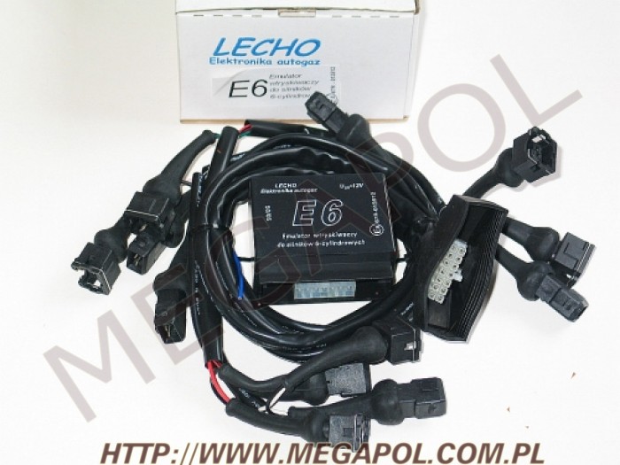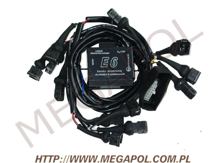 Emulator E6 jest przeznaczony do odłączania wtryskiwaczy benzyny pojazdu wyposażonego w silnik benzynowy z wtryskiem oraz instalację zasilania gazem "propan - butan". Obecnie dostępna jest wersja z wiązką jak na zdjęciu kompletnego zestawu, w przygotowaniu wiązki do samochodów japońskich oraz do samochodów fiat (jeden wtyk szeroki). Emulator E6 obsługuje samochody z silnikiem sześciocylindrowym.