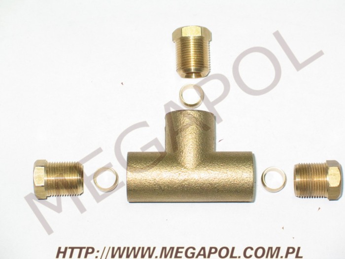 GZ-254A Trójnik redukcyjny mosiężny do łączenia rury miedzianej. Gwint z trzech strony trójnika wynosi 14mmx1mm.