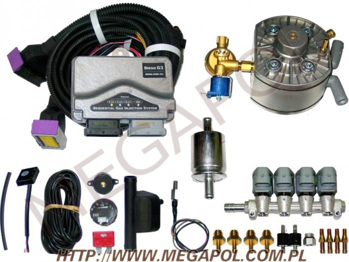 System sekwencyjnego wtrysku gazu LPG/CNG w fazie lotnej Akme ze sterownikiem DIEGO jest zaprojektowanym do zastosowania w samochodach posiadających zaawansowane systemy diagnozy układu zasilania benzyną (OBD2, EOBD) - z katalizatorem i sondami lambda zachowując normy emisji spalin (również EURO4).