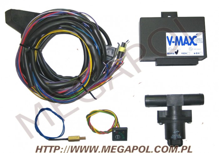 V-MAX Mono to produkt uzupełniający naszą ofertę systemów kontroli sondy lambda o układ znacznie bardziej zaawansowany i dający większe możliwości ustawień niż popularna MINI L. V-MAX łączy w sobie trzy urządzenia niezbędne do prawidłowego funkcjonowania instalacji gazowej: sterownik, emulator wtryskiwacza oraz przełącznik benzyna gaz. Podczas projektowania i wdrażania V-MAX-a główny nacisk położyliśmy na jego niezawodność i bezawaryjność. Innym ważnym celem było zapewnienie łatwości obsługi odbywającej się za pośrednictwem komputera PC. Poprzez czytelny program komputerowy osoba ustawiająca ma do dyspozycji wiele przydatnych parametrów takich jak precyzyjny dobór emulacji sondy lambda, oddzielne parametry pracy silnika krokowego dla wolnych i wysokich obrotów czy regulacja prędkości pracy silnika krokowego. Wszystkie podstawowe parametry mogą być też ustawiane w sposób automatyczny w procesie Autoadaptacji. W zestawie oprócz sterownika z wbudowanym emulatorem i okablowaniem znajduje się silnik krokowy, przełącznik z pełnym wskazaniem poziomu gazu (o rezystancji 20 kOhm lub 90 Ohm w zależności od rodzaju wielozaworu) oraz czujnik temperatury. W sprzedaży dostępne są wersje bez emulatora wtryskiwaczy oraz z wbudowanym emulatorem do silników cztero i sześciocylindrowych z kostkami standartowymi lub bez kostek ( tzw. "do cięcia").