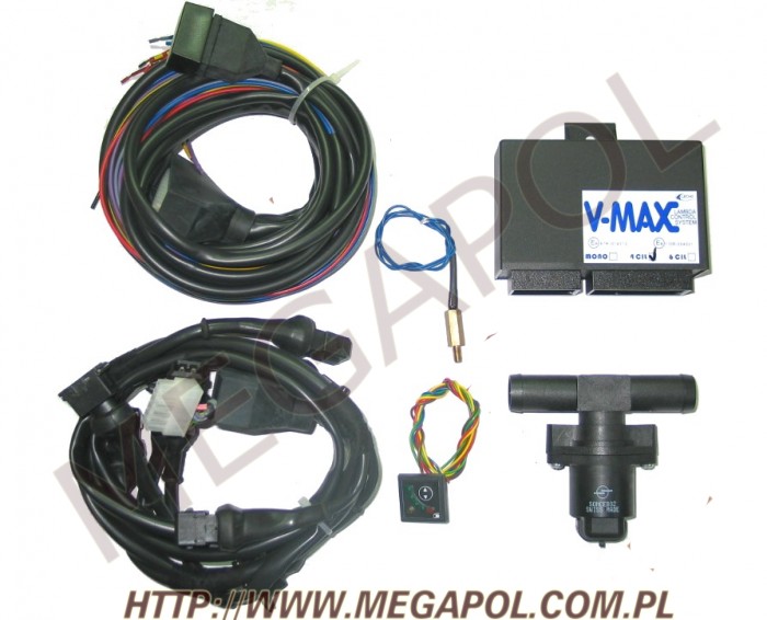 V-MAX to produkt uzupełniający naszą ofertę systemów kontroli sondy lambda o układ znacznie bardziej zaawansowany i dający większe możliwości ustawień niż popularna MINI L. V-MAX łączy w sobie trzy urządzenia niezbędne do prawidłowego funkcjonowania instalacji gazowej: sterownik, emulator wtryskiwaczy oraz przełącznik benzyna gaz. Podczas projektowania i wdrażania V-MAX-a główny nacisk położyliśmy na jego niezawodność i bezawaryjność. Innym ważnym celem było zapewnienie łatwości obsługi odbywającej się za pośrednictwem komputera PC. Poprzez czytelny program komputerowy osoba ustawiająca ma do dyspozycji wiele przydatnych parametrów takich jak precyzyjny dobór emulacji sondy lambda, oddzielne parametry pracy silnika krokowego dla wolnych i wysokich obrotów czy regulacja prędkości pracy silnika krokowego. Wszystkie podstawowe parametry mogą być też ustawiane w sposób automatyczny w procesie Autoadaptacji. W zestawie oprócz sterownika z wbudowanym emulatorem i okablowaniem znajduje się silnik krokowy, przełącznik z pełnym wskazaniem poziomu gazu (o rezystancji 20 kOhm lub 90 Ohm w zależności od rodzaju wielozaworu) oraz czujnik temperatury. W sprzedaży dostępne są wersje bez emulatora wtryskiwaczy oraz z wbudowanym emulatorem do silników cztero i sześciocylindrowych z kostkami standartowymi lub bez kostek ( tzw. "do cięcia").