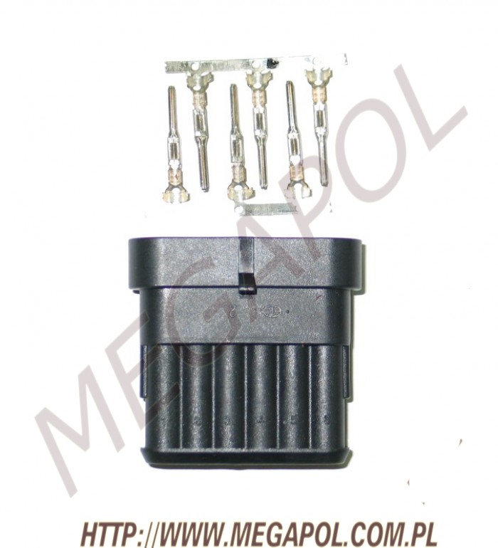 Wtyk kompletny z terminalami do uniwersalnego zastosowania w elektryce samochodowej. Stosowany w instalacjach gazowych jak również do wymiany starych wtyczek w samochodzie