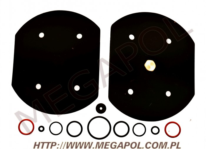 Oprócz samych membran, komplet zawiera również inne elementy, które zużywają się podczas eksploatacji takie jak uszczelki itp.