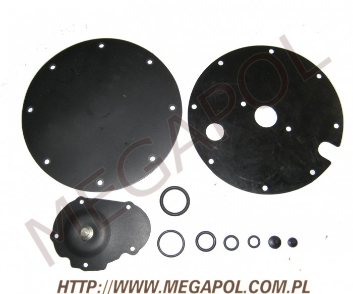 Oprócz samych membran, komplet zawiera również inne elementy, które zużywają się podczas eksploatacji takie jak uszczelki itp.