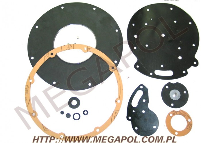 Oprócz samych membran, komplet zawiera również inne elementy, które zużywają się podczas eksploatacji takie jak uszczelki itp.