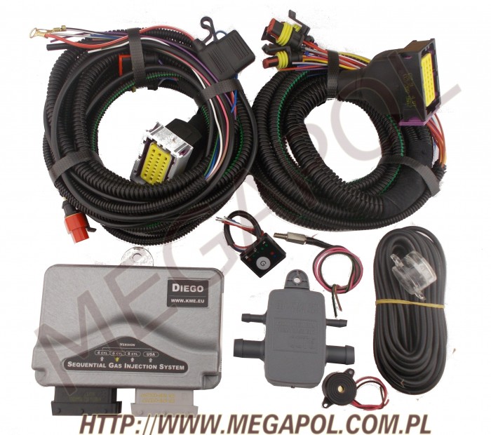 System sekwencyjnego wtrysku gazu LPG/CNG w fazie lotnej Akme ze sterownikiem DIEGO jest zaprojektowanym do zastosowania w samochodach posiadających zaawansowane systemy diagnozy układu zasilania benzyną (OBD2, EOBD) - z katalizatorem i sondami lambda zachowując normy emisji spalin (również EURO4).